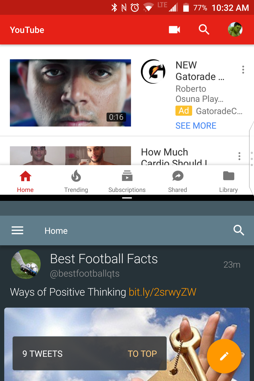 As you can see I have YouTube running at the top with Twitter at the bottom. Not all apps however can do the split screen thing. For example instagram doesn’t. So, yes, I can multi-task but I am still limited. Still better than nothing.