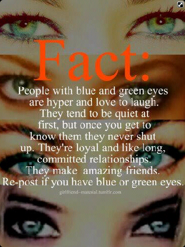 And not because I have blue/green eyes or are they green/blue eyes? ;)… Both my kids have blue eyes… Both my son and I are initially reserved but once we get comfortable we r a blast to know :). My daughter Dahlia kinda bucks the trend.. She is a social butterfly from the get-go. She will talk up a storm like she’s known u for years! Lol.